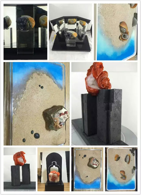 2、艺皇底座将各种材料运用到极致,金属、木料、塑制、玻璃、石材、针织、陶泥、油画等,利用材质本身的美感来反衬和正衬玉石作品的气质,通过材质本身的特性,塑造各种形态的质感艺术。