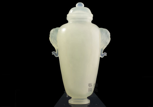 灵玉宝瓶饰以瑞象作耳,施谐“平”之太平,象取厚重稳行之意,是谓时世安宁和平之太平盛世。太平有象,得四海升平、吉祥平安之福瑞。