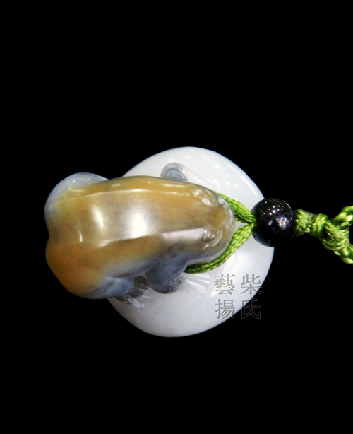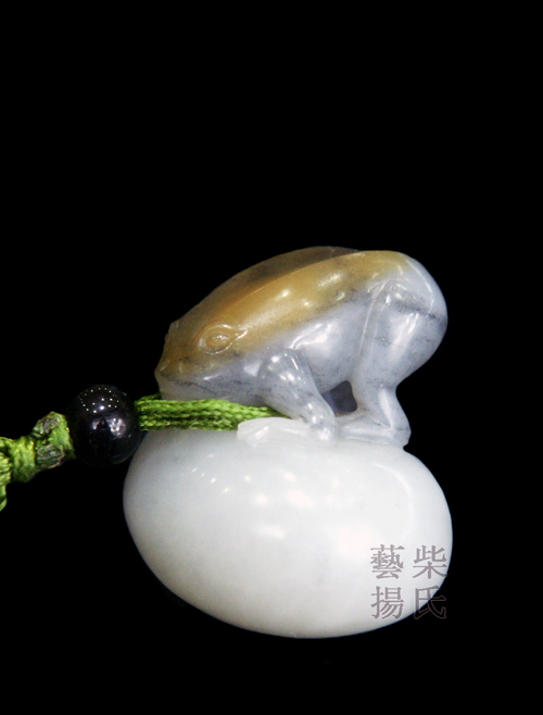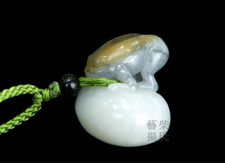 玉不琢不成器。俏色仔料虽好,但不经过玉工们的雕琢,仍不是一件精美的艺术品。高明的大师会充分理解和运用玉的俏色,顺色取材、因材施艺。此件作品就体现了作者对俏色运用的独到,一只青蛙仿佛瞄准前方,鼓足勇气,蹬起四爪,准备进攻。作者采用拟人形式和圆雕手法,使得主体形象饱满,栩栩如生。作品把观赏性和艺术的美感很好地结合了起来。不失为佳作,值得收藏。 |
