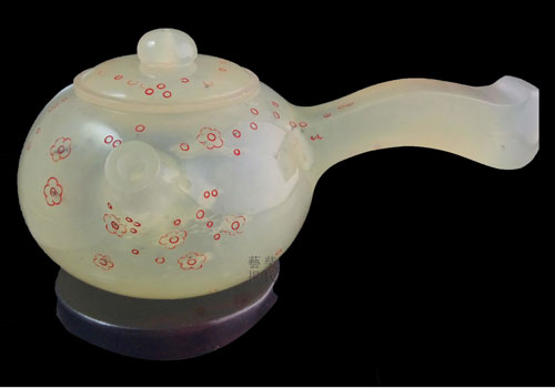 把壶赏析:把壶有虚怀若谷、有容为大的寓意。壶身所点缀的梅花更有志趣高洁之意。