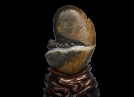 层林尽染,万壑披金的山峰,错落有致的房屋,白水潺潺的小河,一幅静谧幽深、让人神往的山水风景。带皮青花籽料的自然色彩在作者的巧妙构思下成就了这件构图独特、色彩运用绝妙、动静相宜的玉雕佳作,作品又揉和了写实派风景山水油画的风格,把观赏性和艺术的美感很好地结合了起来,极具视觉冲击,不失为佳作。 |