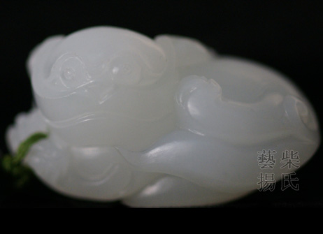 作品是由一块俄罗斯白玉精雕而成,肉质细腻,色泽比较白,属一级白。 貔貅能吞万物而从不泄,故有纳食四方之财的寓意。中国传统是有“貔貅”的习俗,和龙狮一样,有将这地方的邪气赶走、带来欢乐及好运的作用。适合长期佩戴。