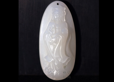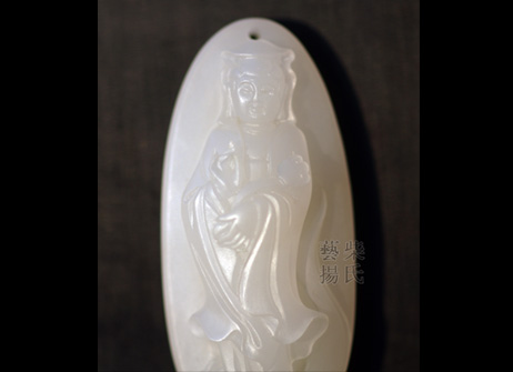 青海白玉观音,玉质白皙通透、雕刻细腻,曲线完美、流畅。