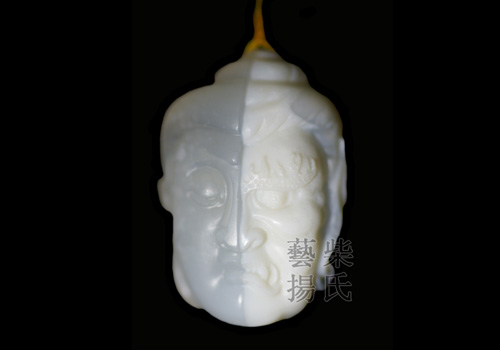 作品佛魔一线选取上等阿拉善玛瑙精心雕刻,较为稀有,雕工老道、熟练。作品巧取白色和透明色,利用双色各一半,做出一边是佛祖的脸,一边是魔鬼的脸,这样的呈现给大家明白:所有的人都会出现正负两面,心向善就会成佛,心向恶就会成魔。我们所说的“不成佛,便成魔”在这件作品上表现的淋漓尽致。再加上其设计的独特风格,甚是罕见,是一件难得的的艺术品! |